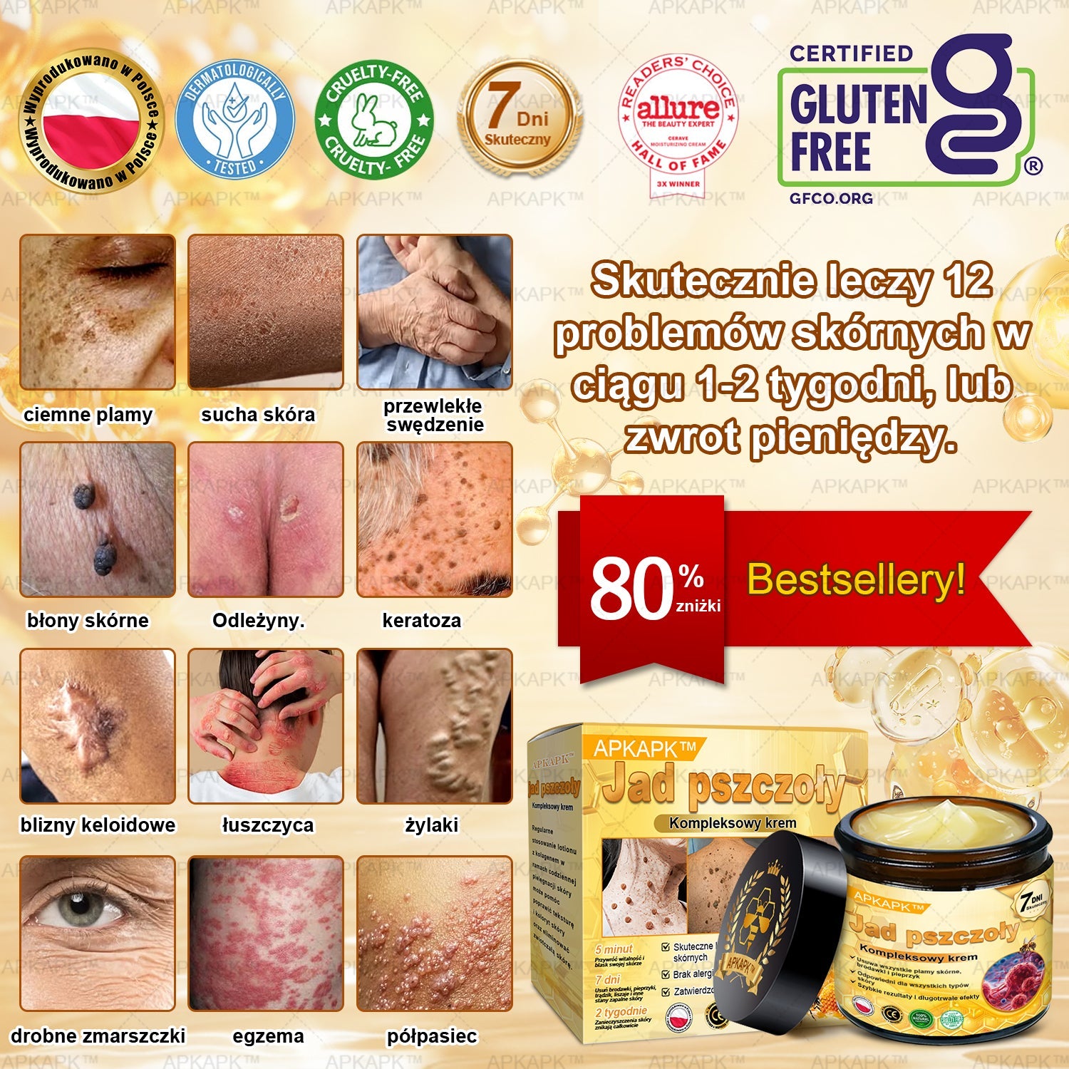 Macie dość kosztów botoksu i długotrwałych zabiegów? Poprzednie produkty do pielęgnacji skóry wprowadziły Was w zakłopotanie? Czas odzyskać pewność siebie ΑPΚΑPK™ Jad Pszczoły Kompleksowy Krem Bee Venom Comprehensive Cream!